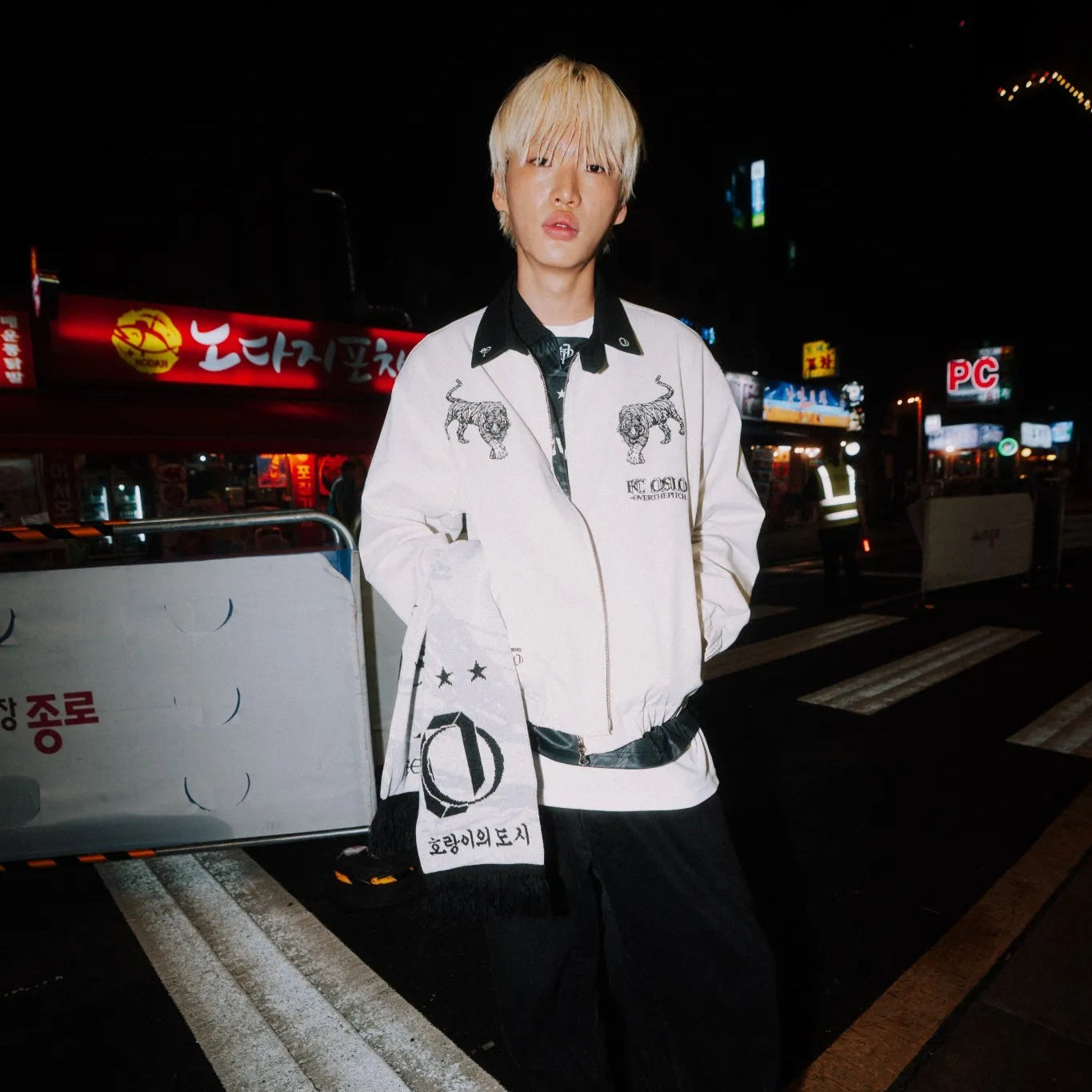 This 100% cotton jacket combines natural comfort with premium style. Its standout feature is the intricate tiger embroidery on both the front and back, delivering a bold, luxurious touch. The contrast of the black collar and pocket details against the ivory base creates a refined yet modern look. Perfect for everyday wear or special occasions, this jacket offers a harmonious blend of sophistication and ease, making it a stylish choice for those who want to make a confident statement.